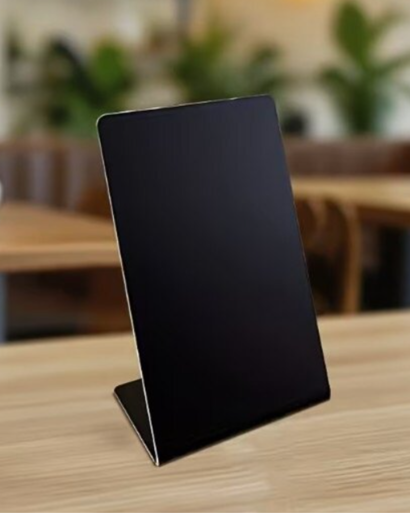 De stevige L-vorm en het grotere formaat zorgen voor maximale zichtbaarheid op bar, tafel of counter.